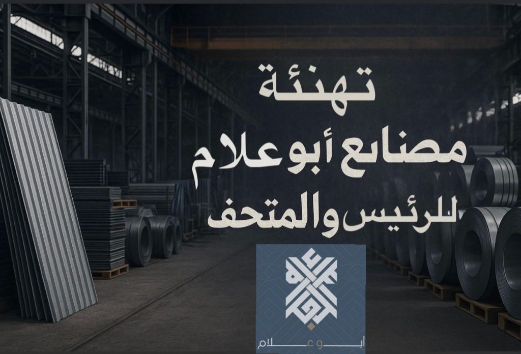 و تهنئة من مصانع أبو علام لفخامة الرئيس عبد الفتاح السيسي بمناسبة افتتاح المتحف المصري الكبير — صرح يخلّد عظمة التاريخ ويجسد حاضر مصر المشرق ومستقبلها الواعد.