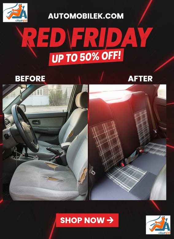 يستعد عشاق السيارات ليوم 12 ديسمبر 2025 مع انطلاق عروض “الجمعة الحمراء” من Automobilek.com، حيث تصل الخصومات إلى 60% على أغطية المقاعد وإكسسوارات السيارات. العروض التمهيدية تستمر أسبوعًا كاملًا قبل اليوم الرئيسي، لتتيح للعملاء فرصة التسوق المبكر واقتناص أفضل الصفقات قبل موسم الأعياد.